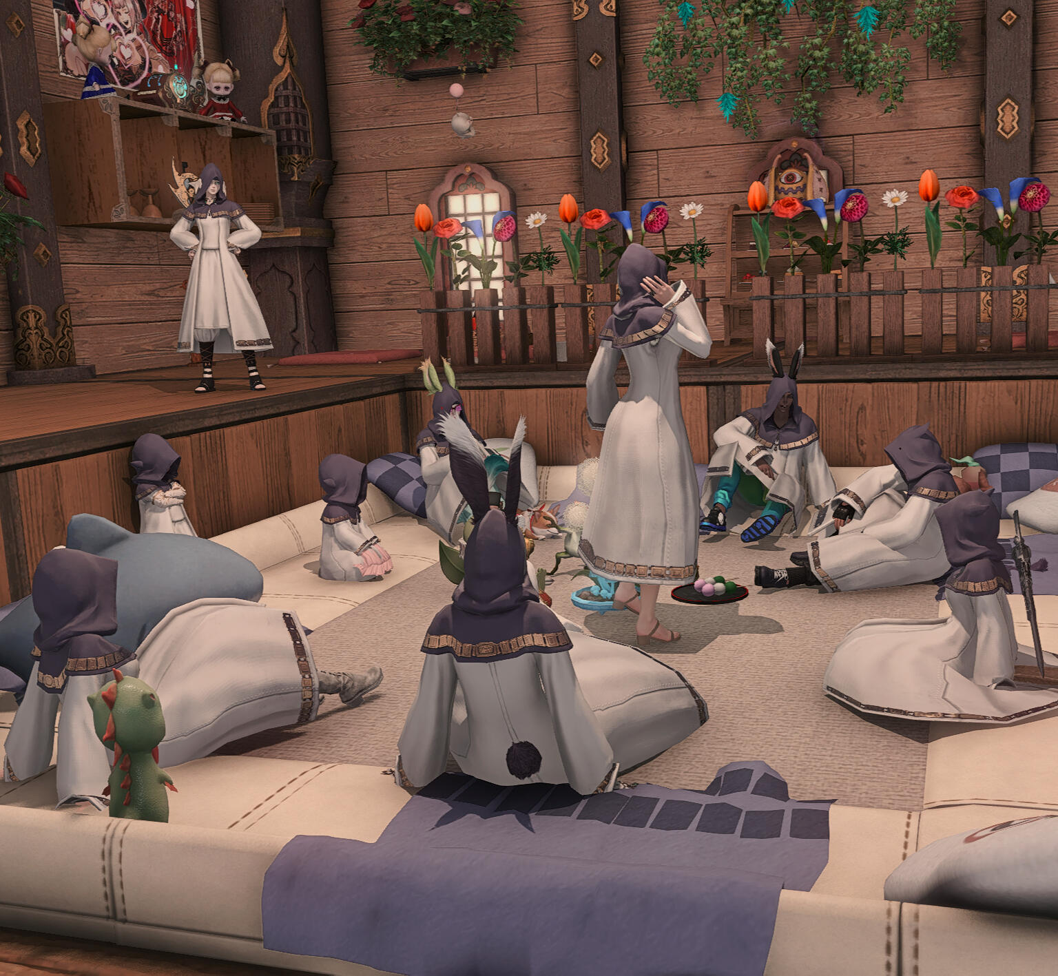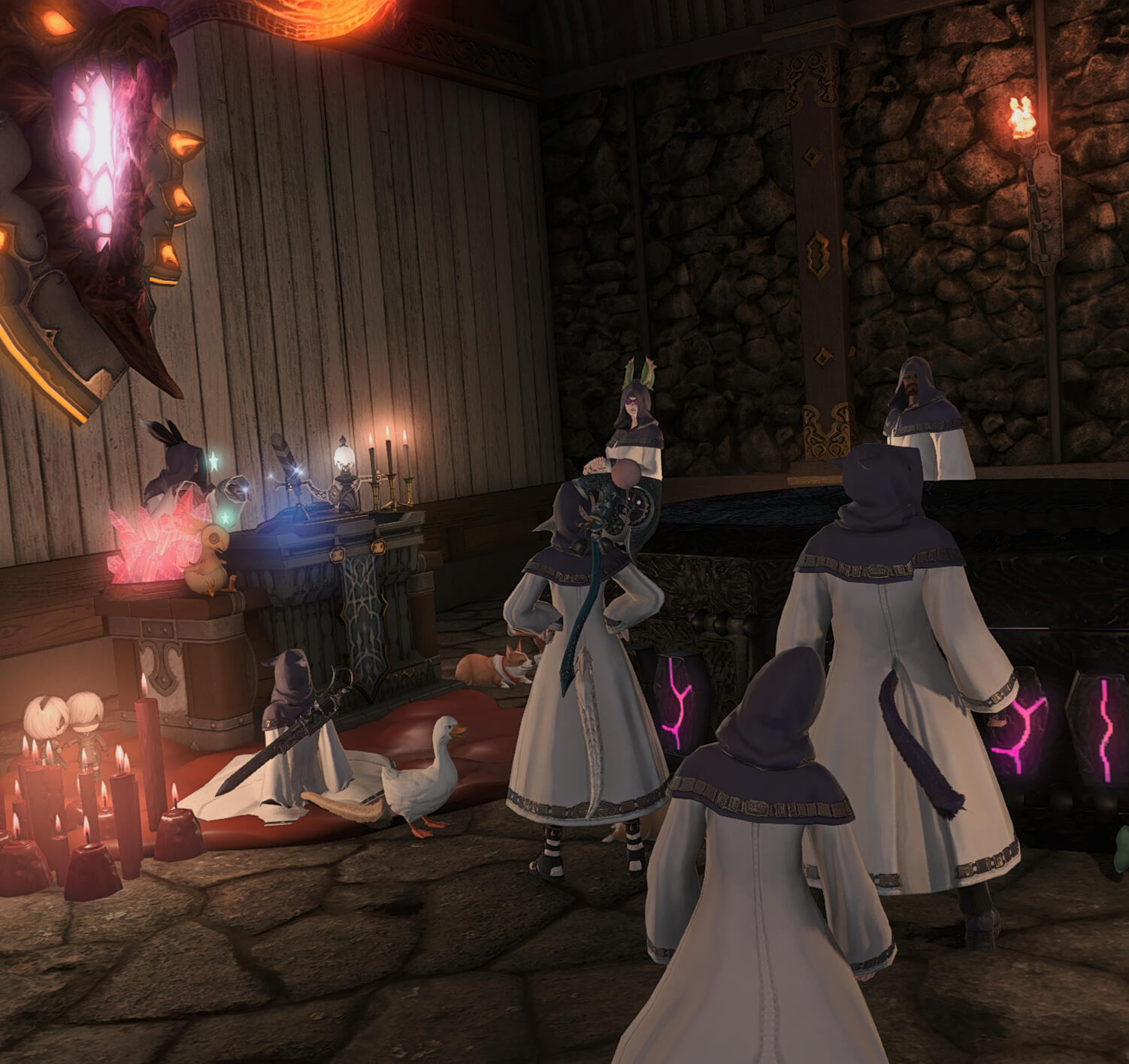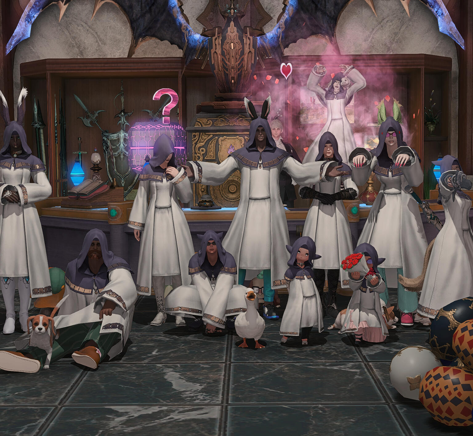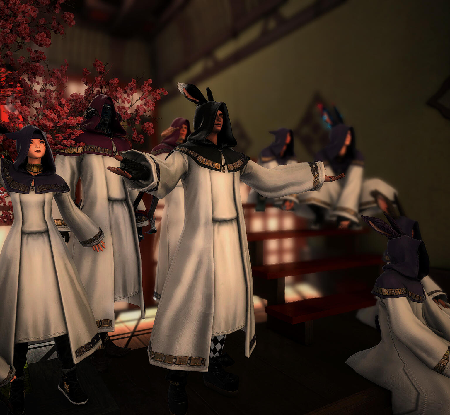 Welcome. You've found Faerie's least suspicious free company!The Seventh Sect is an active free company with 24/7 buffs and a focus on community. We cater to all friendly players who want to get lured into a cult find an active, welcoming group of friends to explore Eorzea with!With members at every level from end-game raiders to sprouts, including returners, newbies, and mentors looking to teach, we're accessible to all.Our leadership team is inclusive, approachable, and has LGBTQ+, PoC, and women in leadership roles. Our members range from 18+ to those in their late 30s. We're committed to maintaining the vibe and keeping it fun!The Sect practices ethical recruitment, meaning all new sacrifices recruits are treated like people and met through conversation and a personal vibe check - never random shouts. We'd love to sacrifice your soul meet you!Note: The rumors about the kool-aid are entirely unsubstantiated.
