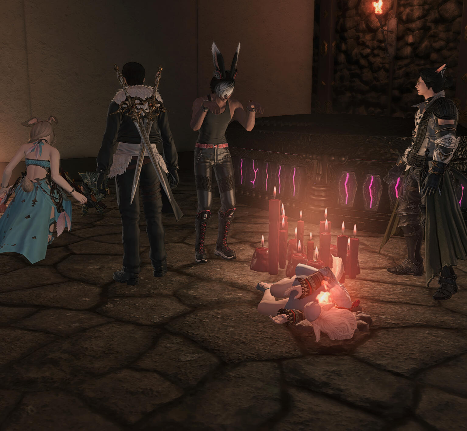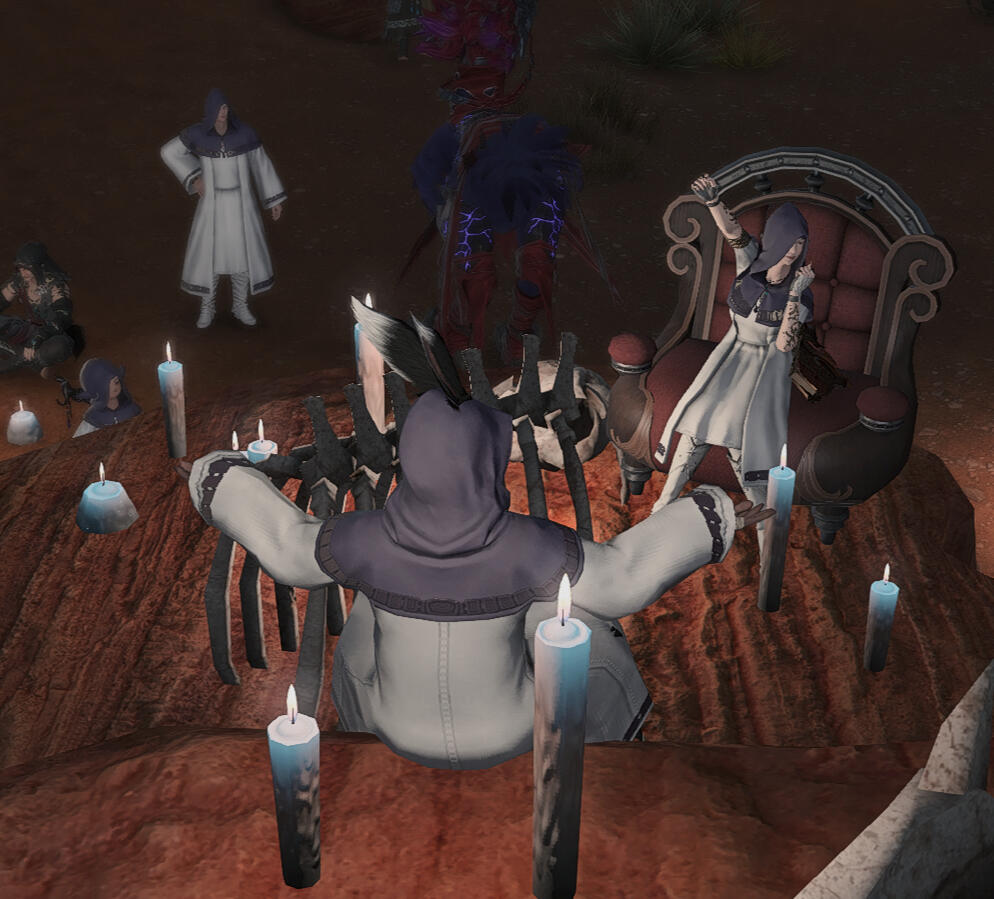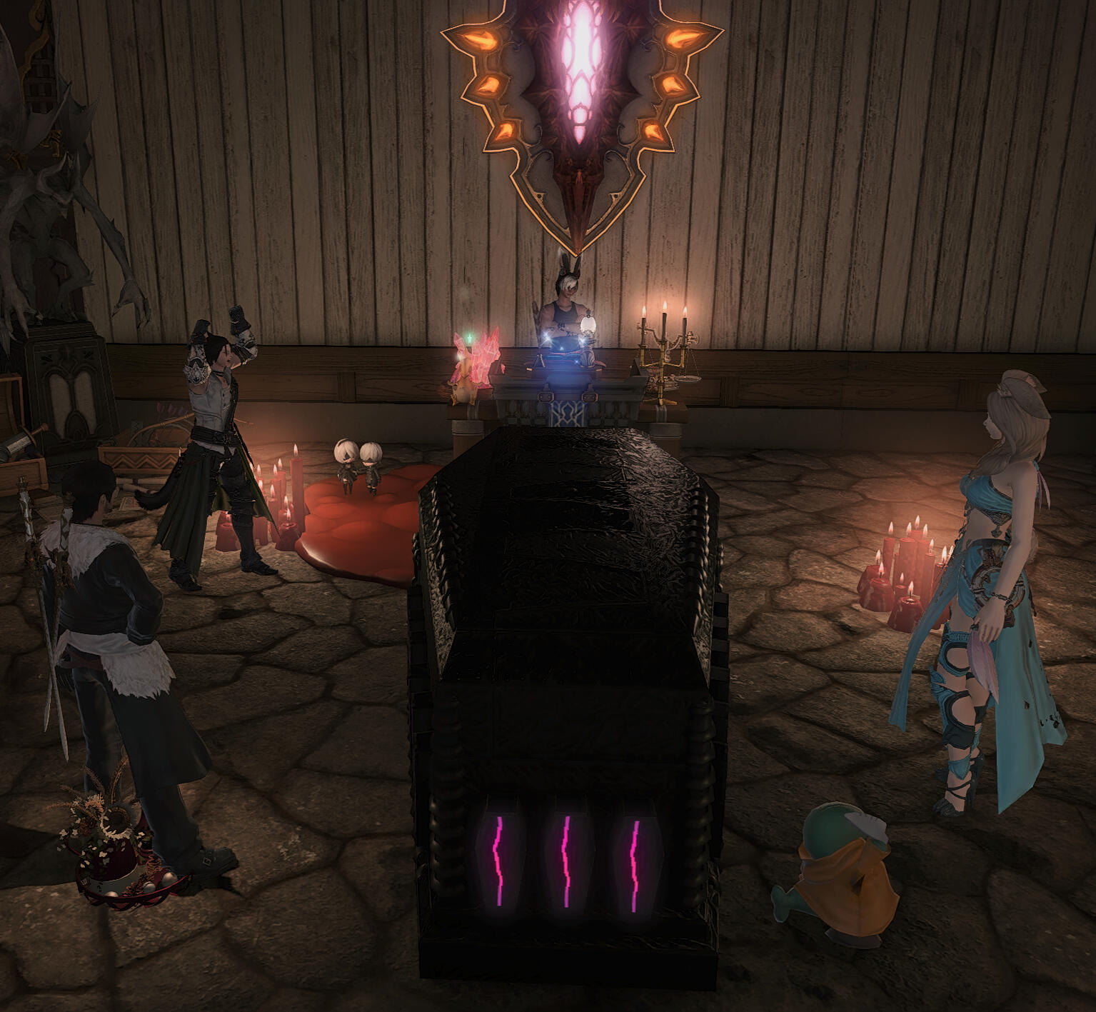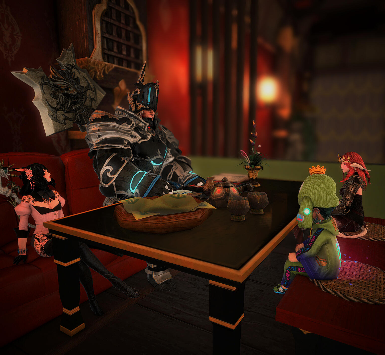 Very little is known about [REDACTED]. Often seen eyeing the Ul'dah black market, he's widely regarded as the "face" of the cult, while managing the technicalities behind the scenes. Simultaneously the stuff manager, lore keeper, and things juggler - no one seems to know exactly what he does. He was last seen shouting about fishing windows and kool-aid in a rowdy Limsa conga line.